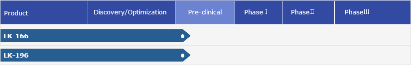 LK-166 and LK-196 are currently in the preclinical stage. Patents for these products have been granted in the US and Europe; international patents under PCT are pending.